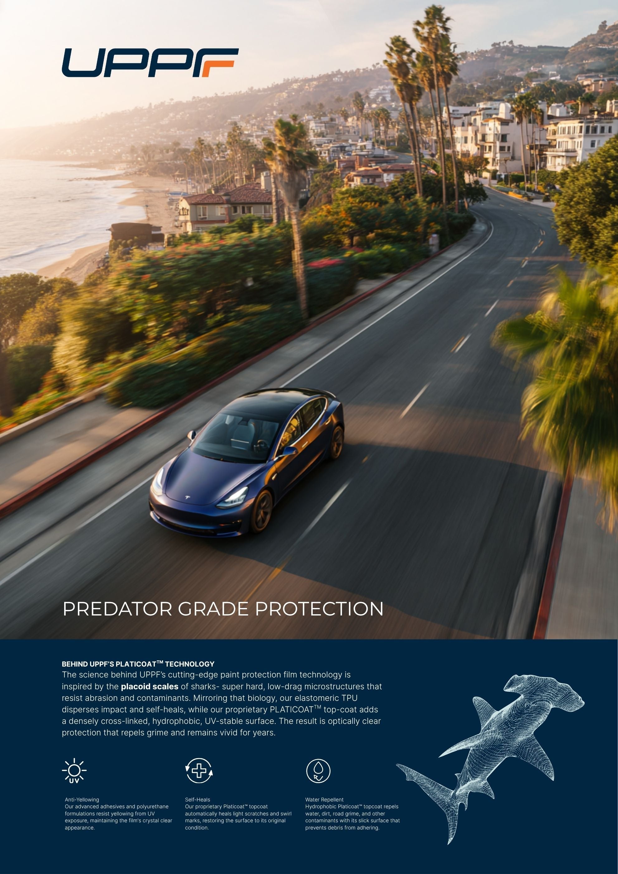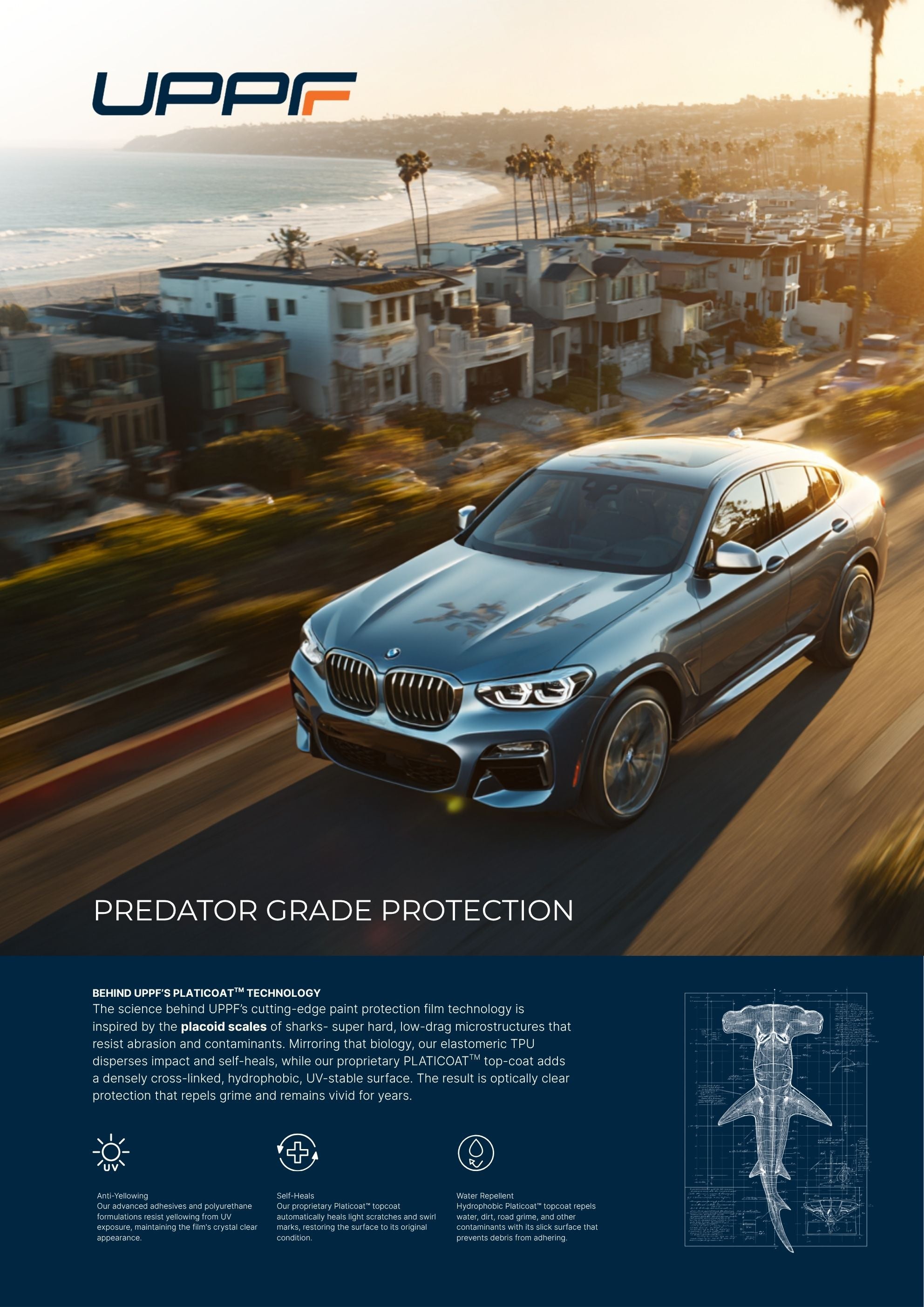 This image features UPPF's Hammerhead Pro: an ultra-glossy, transparent protective 'second skin' that is designed to protect and remain crystal clear over time.